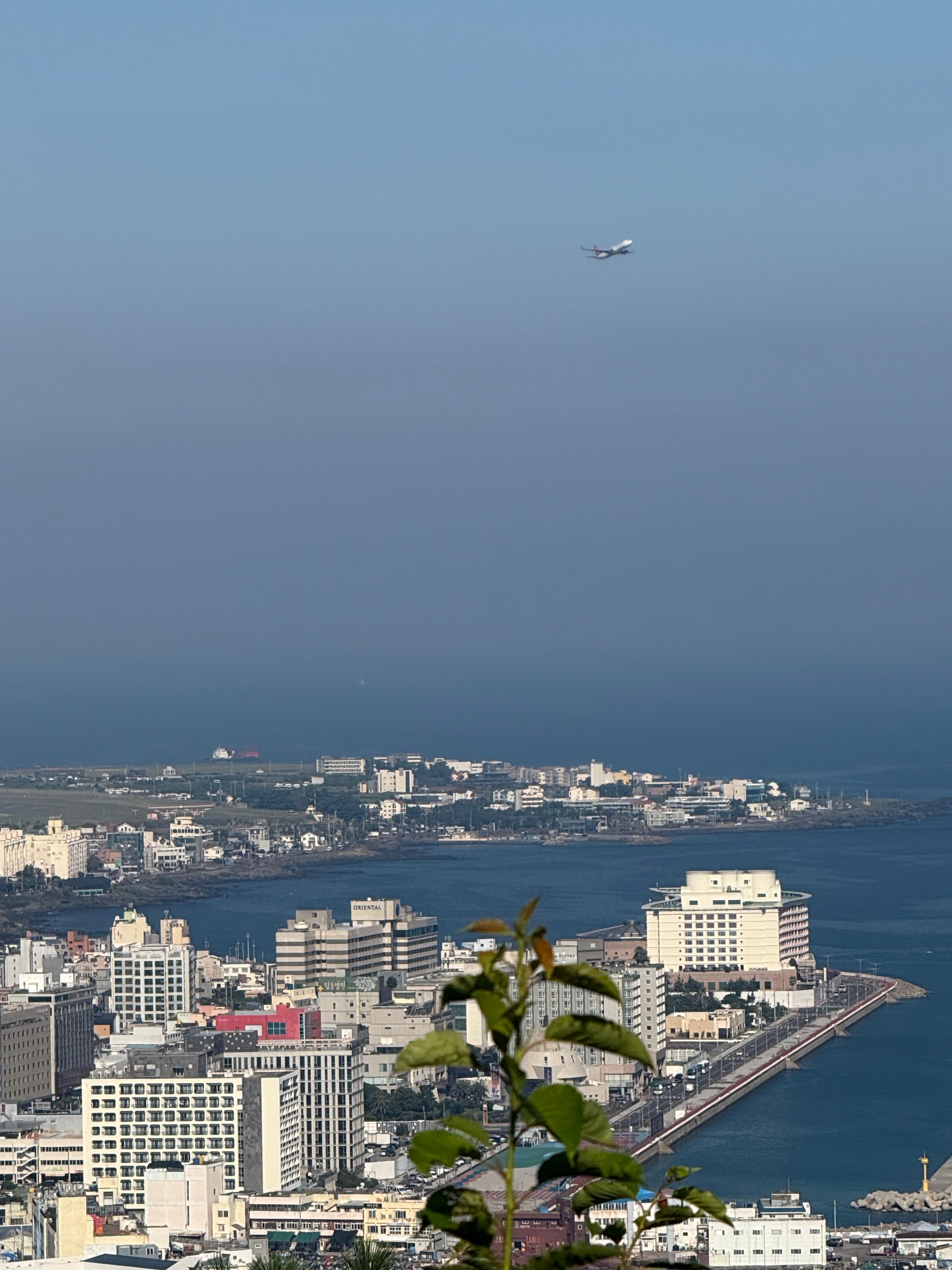 이곳에서는 제주공항과 제주항이 함께 보이고 정확히 서쪽을 볼 수 있게 되어 있어 일몰이 예쁠 수밖에 없어 보였다.