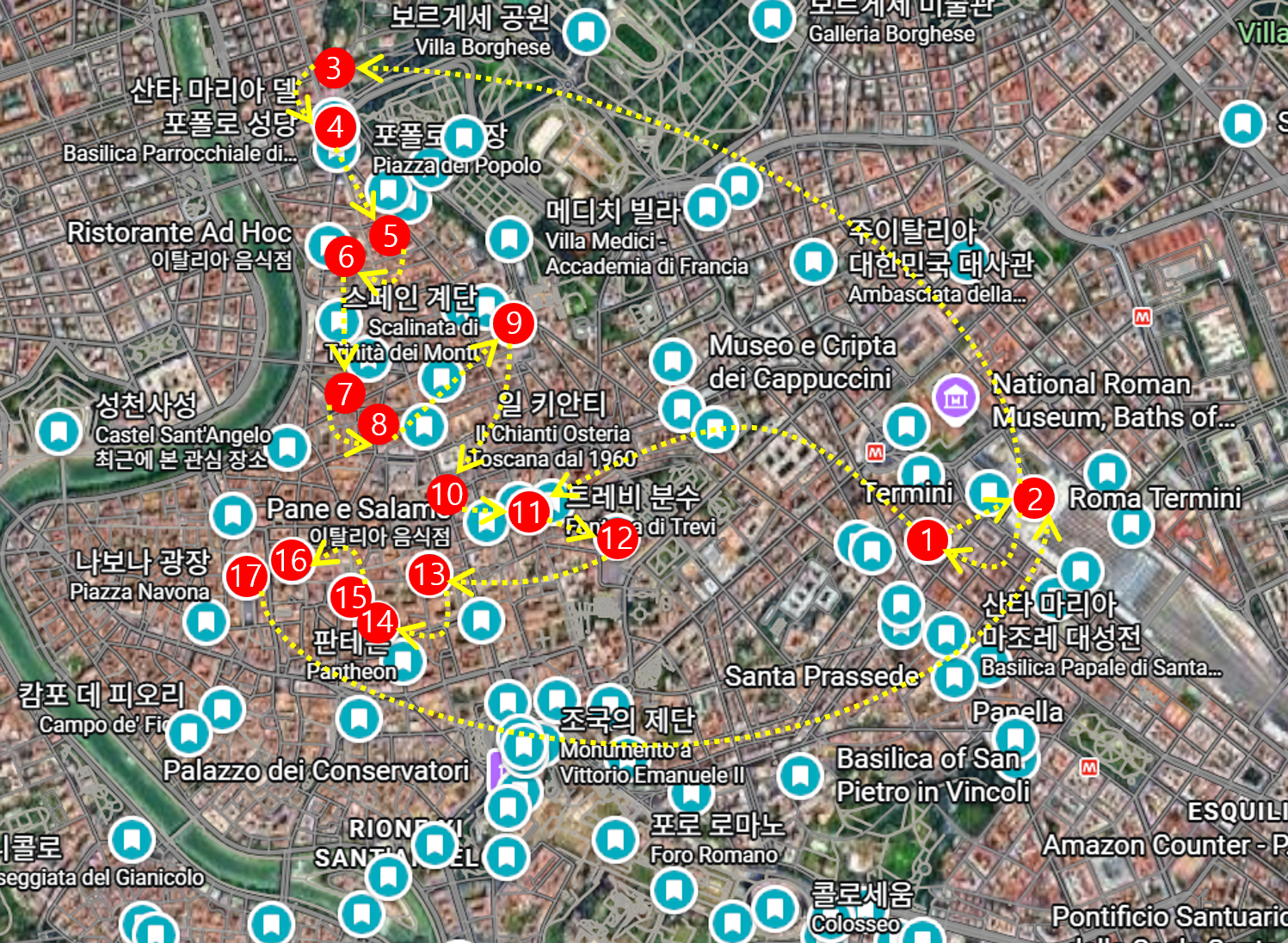 | 16:30 | 버스로 Termini역 도착 |