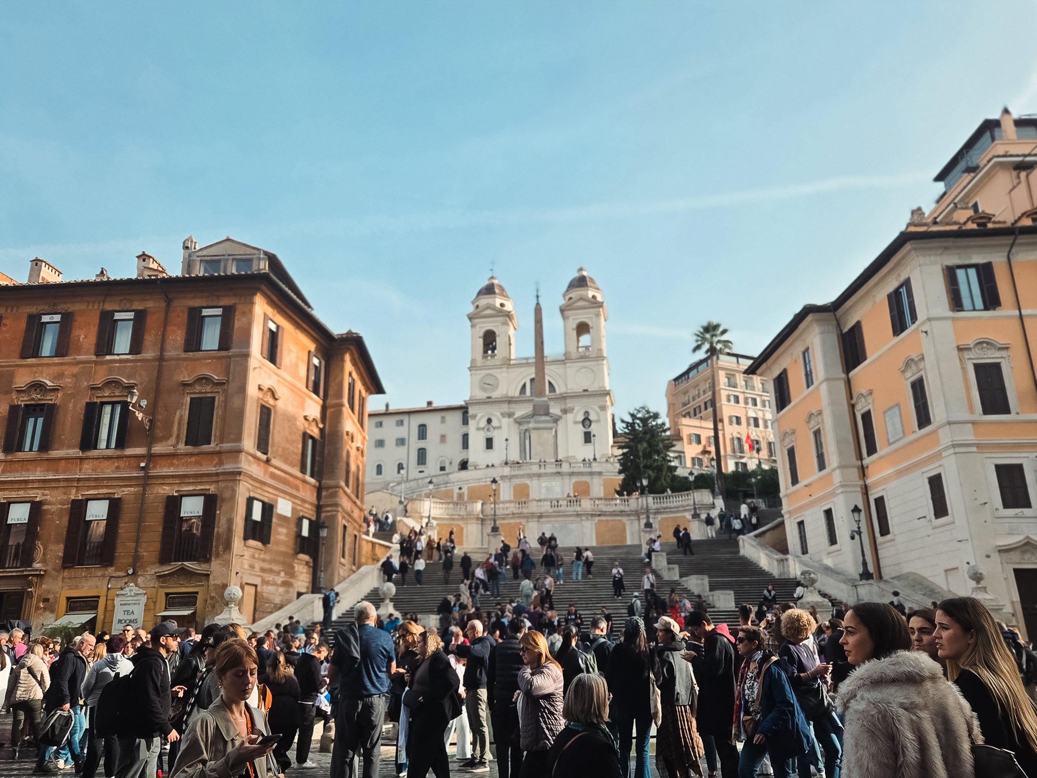 오전 10시쯤에 도착했는데, 스페인 광장과 스페인 계단은 사람들로 넘쳤습니다.