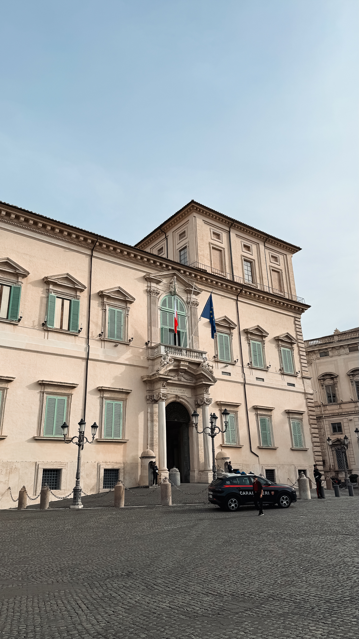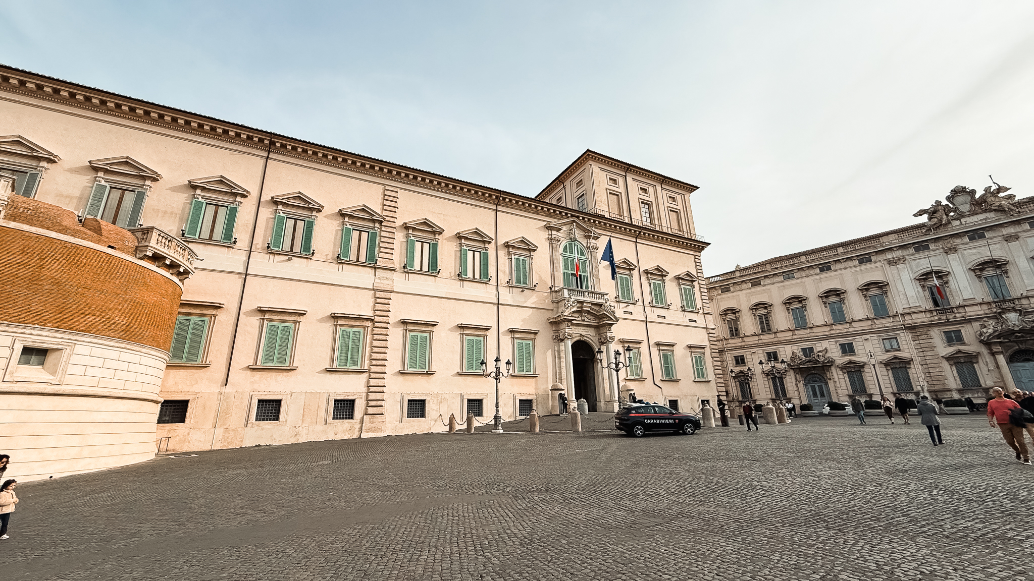 우리는 트레비 분수의 인근에 있는 퀴리날레 궁전으로 향했습니다.