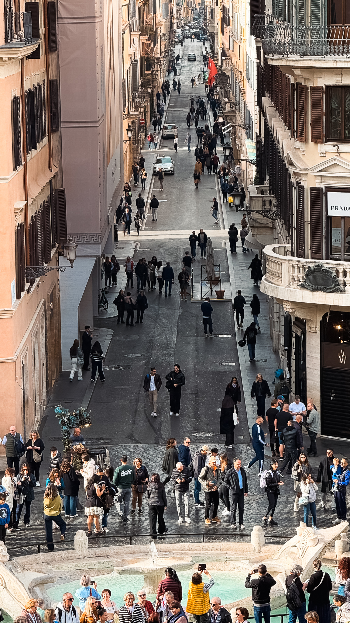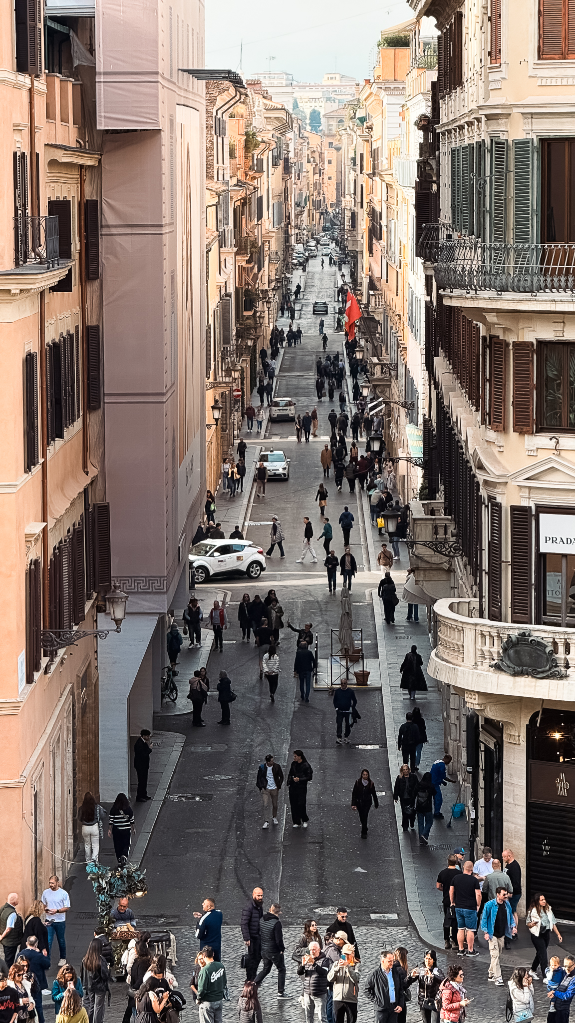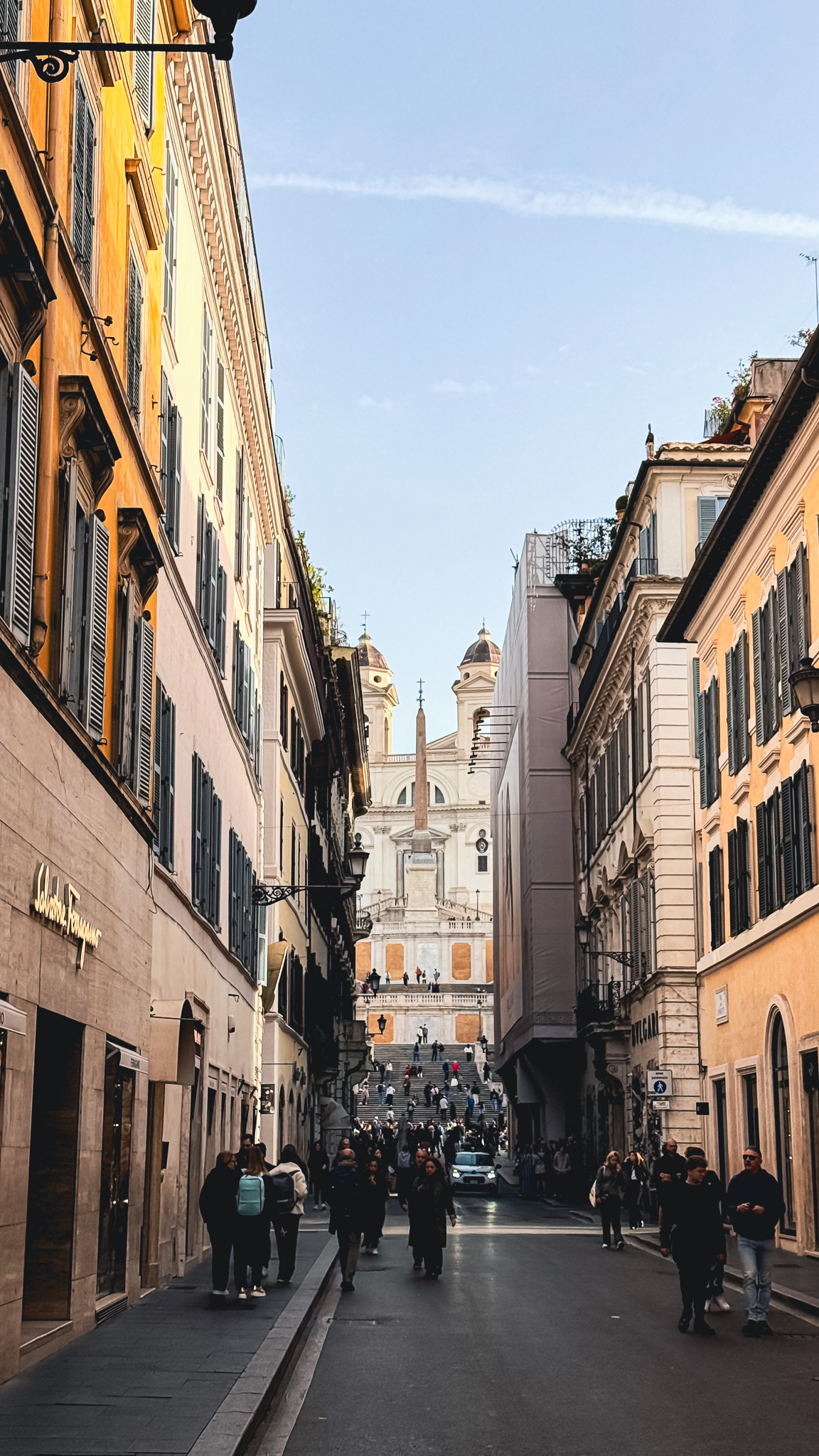 코르소 거리의 여러 상점들을 구경하며 걷다 보니 점점 우리는 스페인 계단에 가까워지고 있었습니다.
