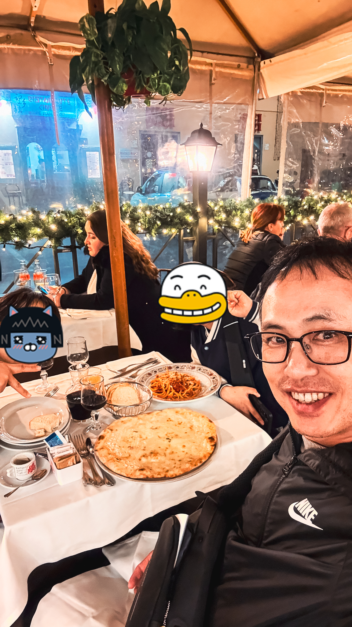 우리는 파스타와 피자를 먹었고, 저는 역시 레드 와인과 함께 했습니다.