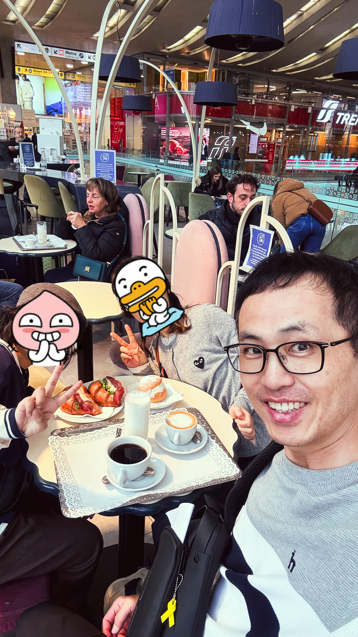 우리는 테르미니 역 안에 있는 카페를 찾았습니다.