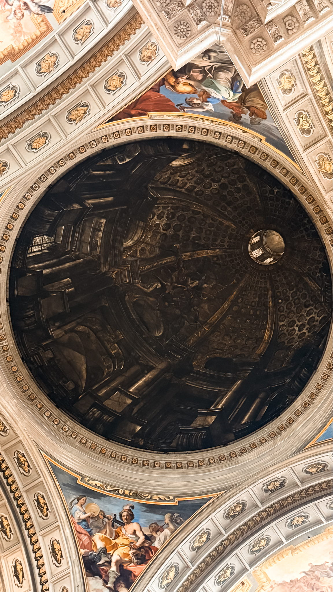 이곳은 돔이 없는데 돔이 있는 것처럼 그린 천장화가 특징인 성당입니다.