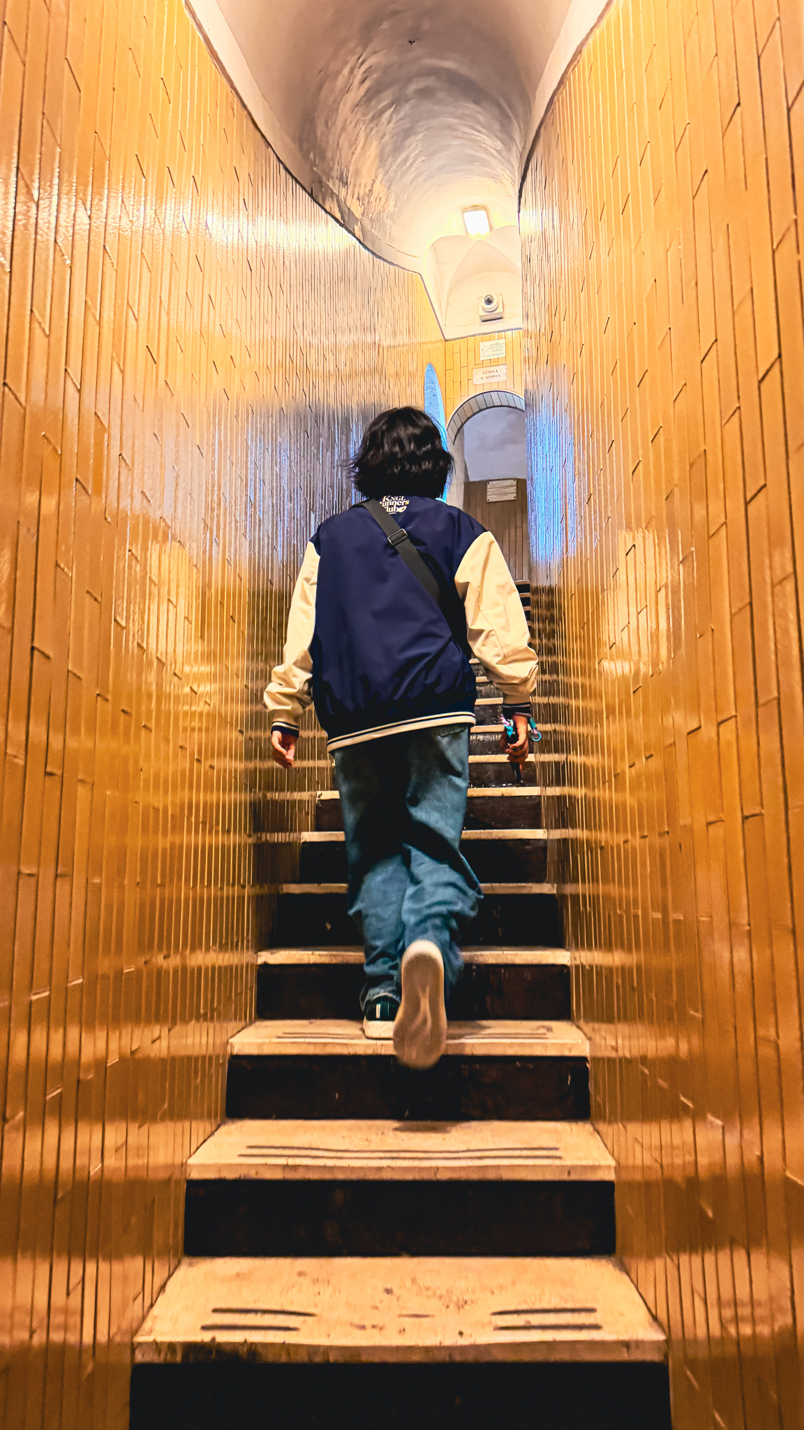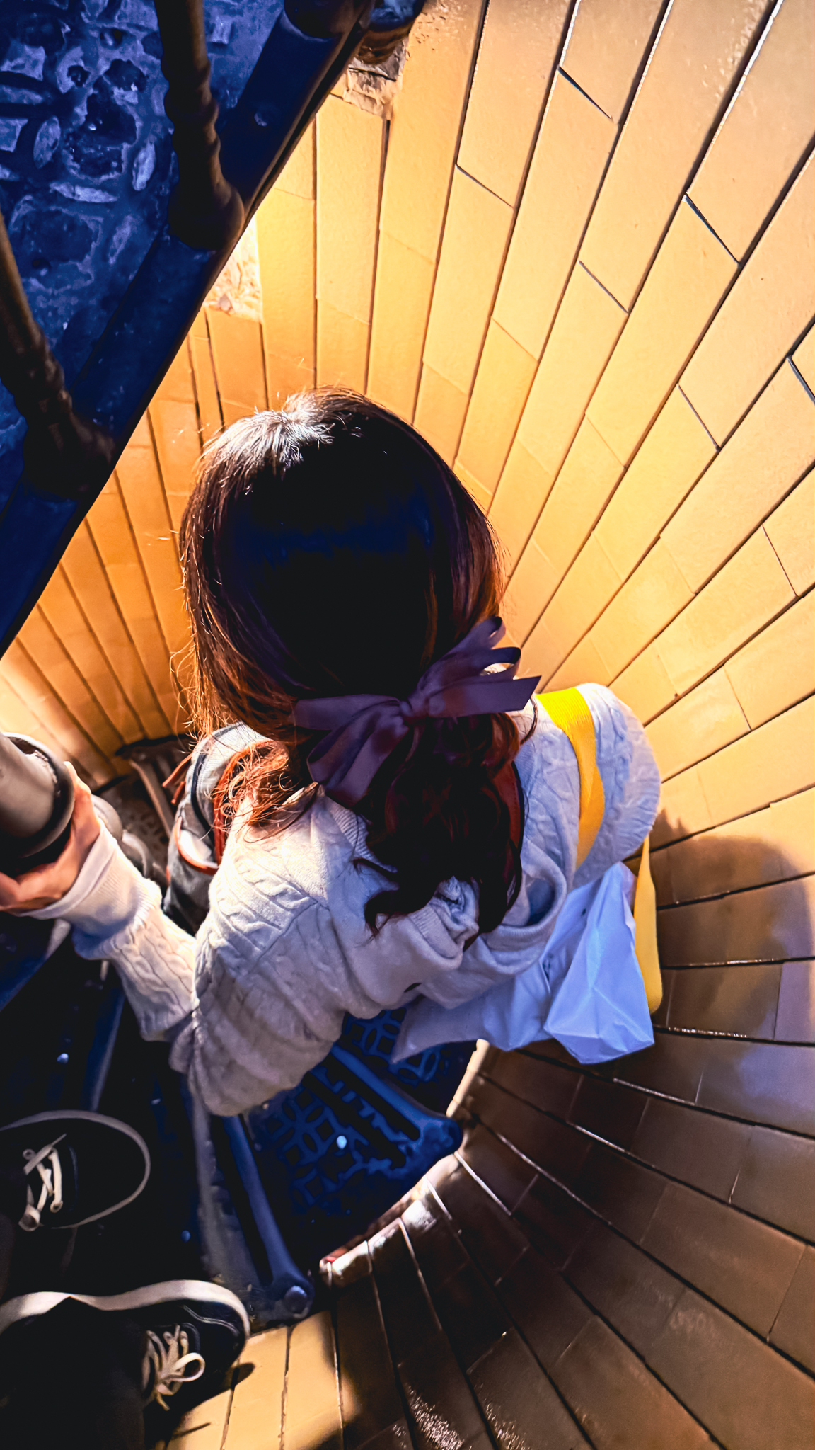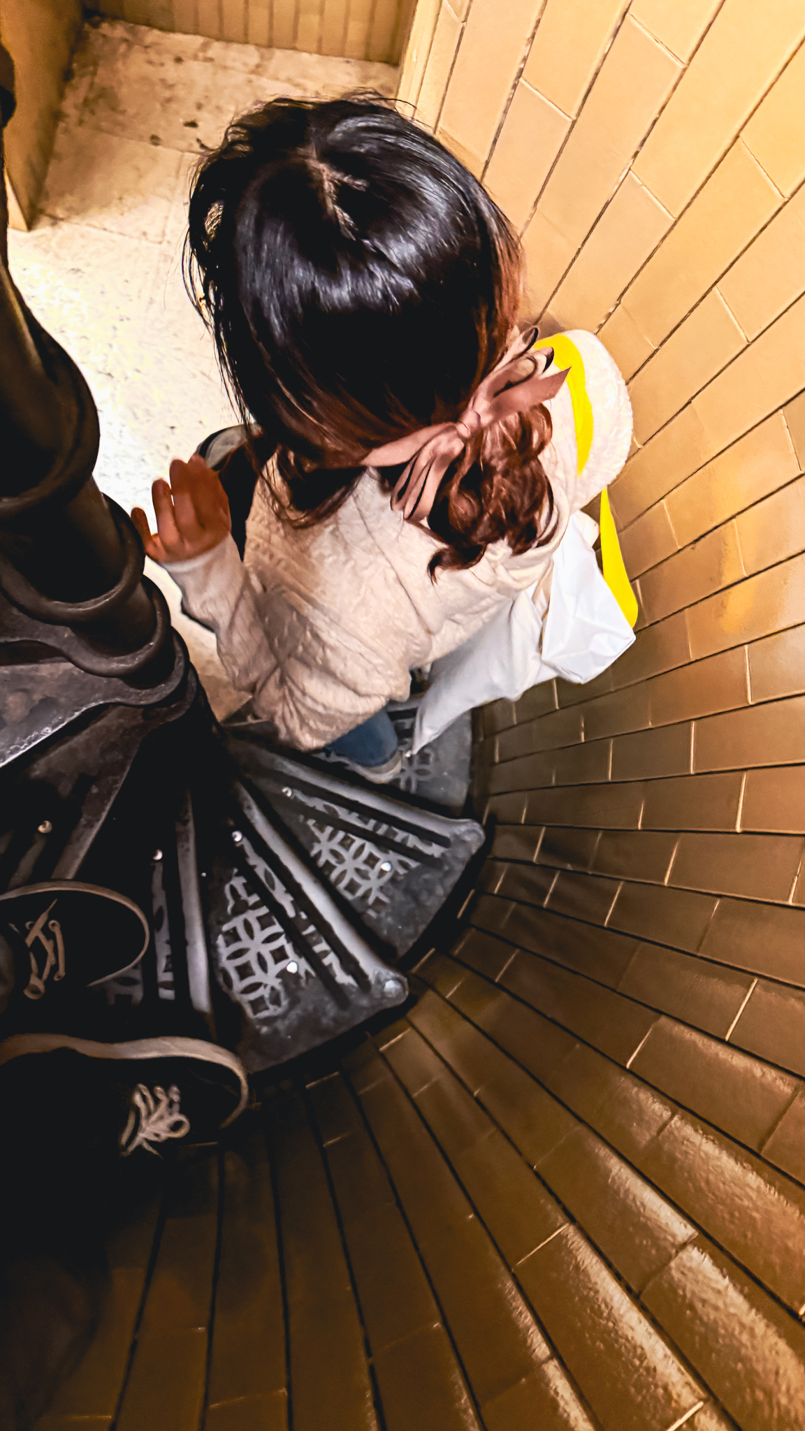 이곳까지는 티켓에 포함되어 엘리베이터를 탄 것이고, 다른 사람들은 여기까지도 계단으로 와야 합니다. 이제부터는 계단밖에 없어 우리도 계단으로 올라가야 합니다.