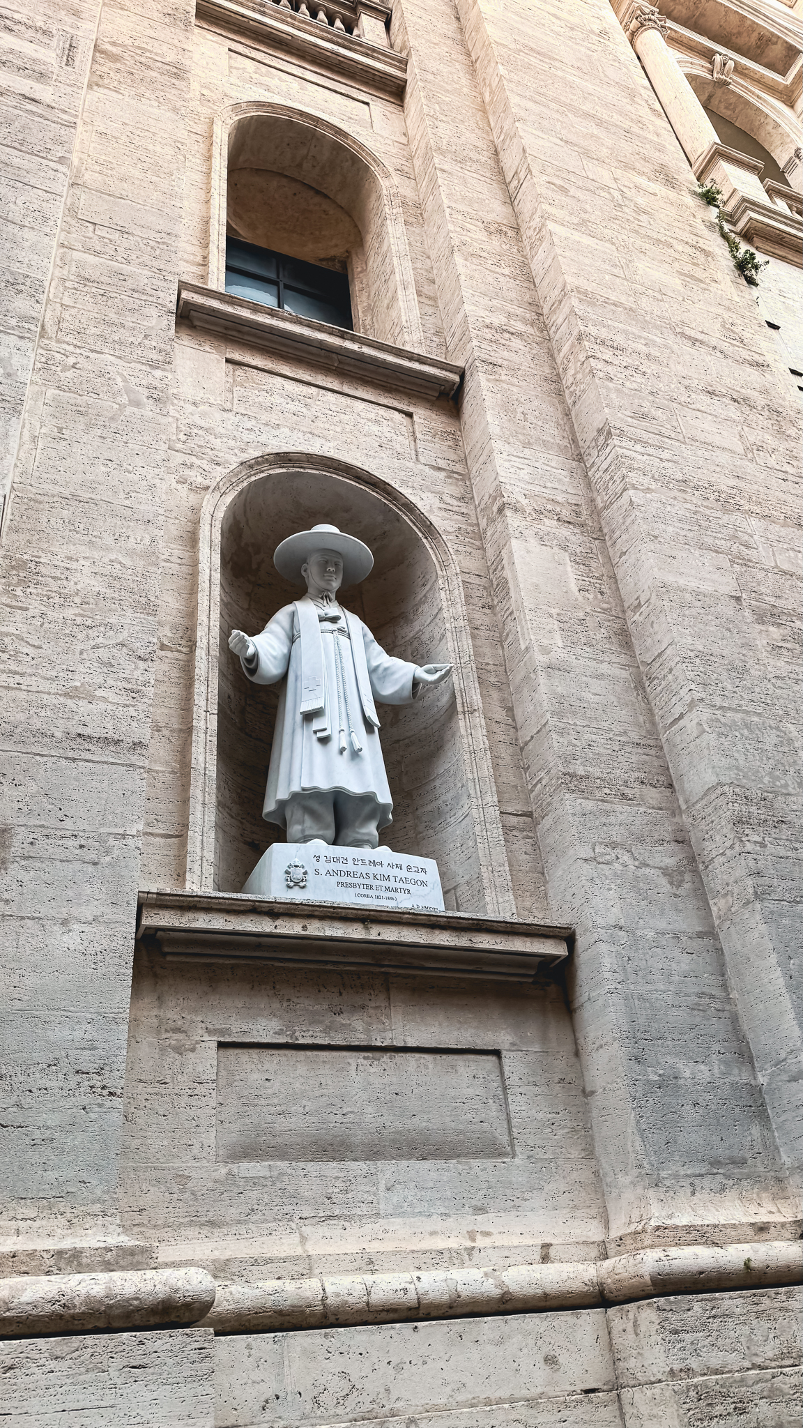 건물의 오른쪽 문을 통해 입장하게 되고, 미리 공부한 대로 그 문으로 곧장 들어가자마자 '김대건 신부' 석상을 찾았습니다.