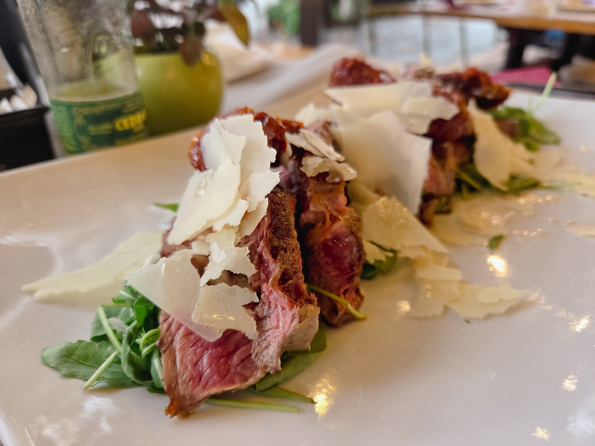 스테이크를 잘라서 샐러드와 함께 나온 요리인데, 매 끼니마다 파스타와 샌드위치만 먹다가 오랜만에 단백질을 먹으니 너무 행복했습니다.