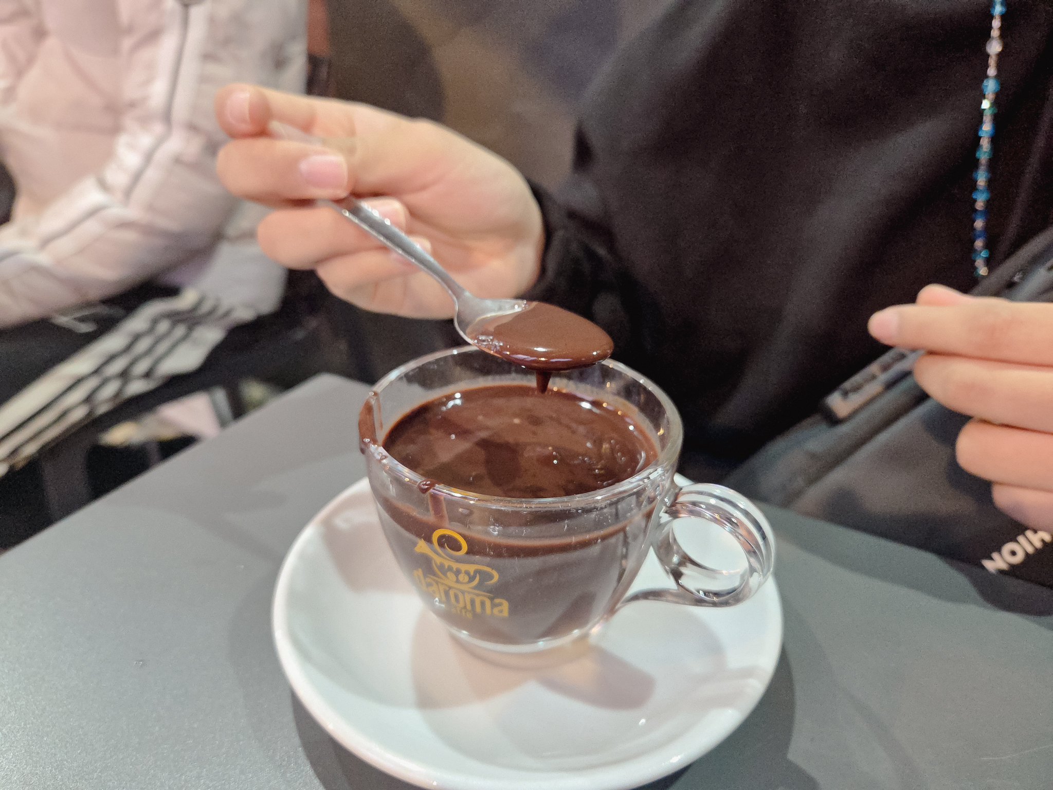 사진 속의 초코 음료는 딸아이를 위해 핫초코를 주문해준 것인데, 우리나라의 핫초코를 생각하면 안되고 진짜 초콜렛을 그냥 녹여서 만들어 걸죽~~~한 상태로 나옵니다.