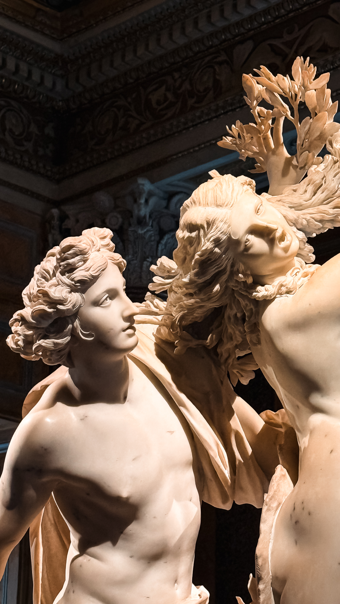 이 작품은 다프네가 완전히 나무가 되기 직전, 인간과 나무가 동시에 존재하는 순간을 담아냄.