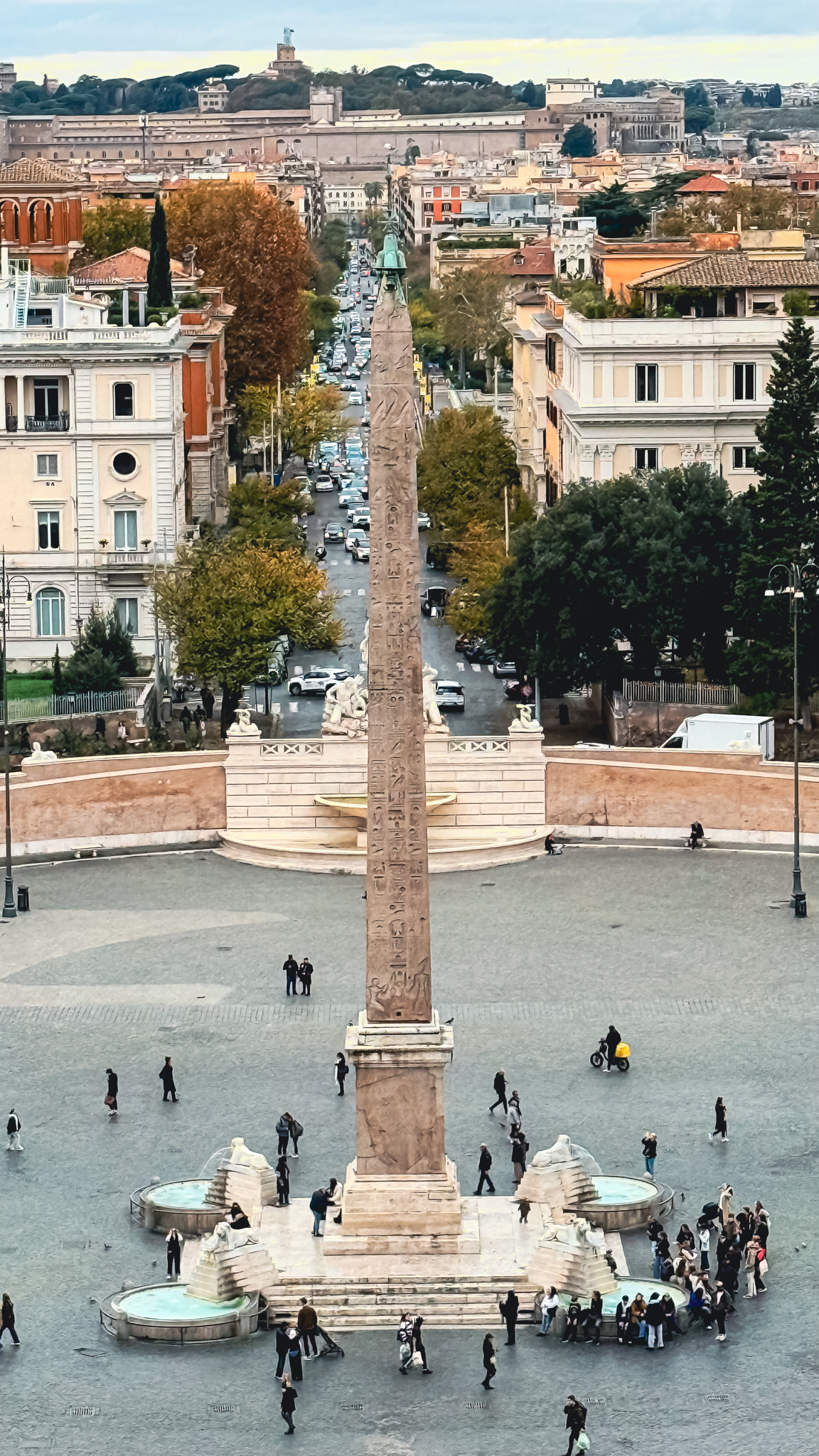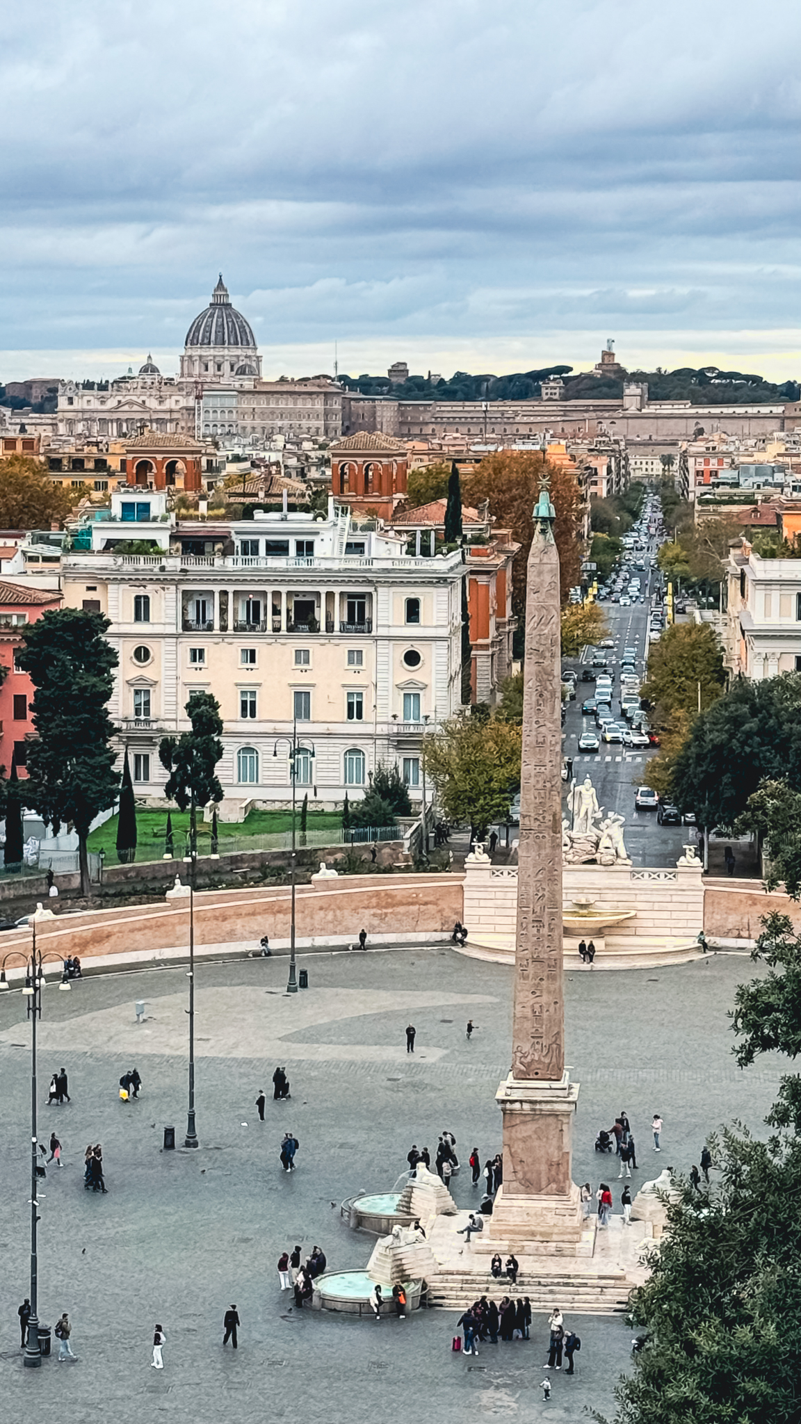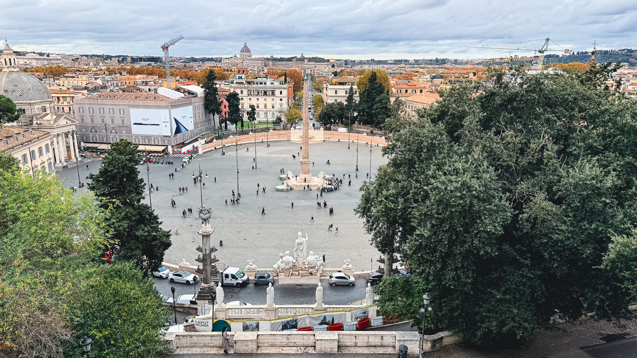 핀초 언덕은 포폴로 광장 위에 있어서 포폴로 광장이 한 눈에 다 내려다 보이고, 바티칸 시국 근처에 있어서 적당한 거리에서 바티칸을 볼 수 있습니다.