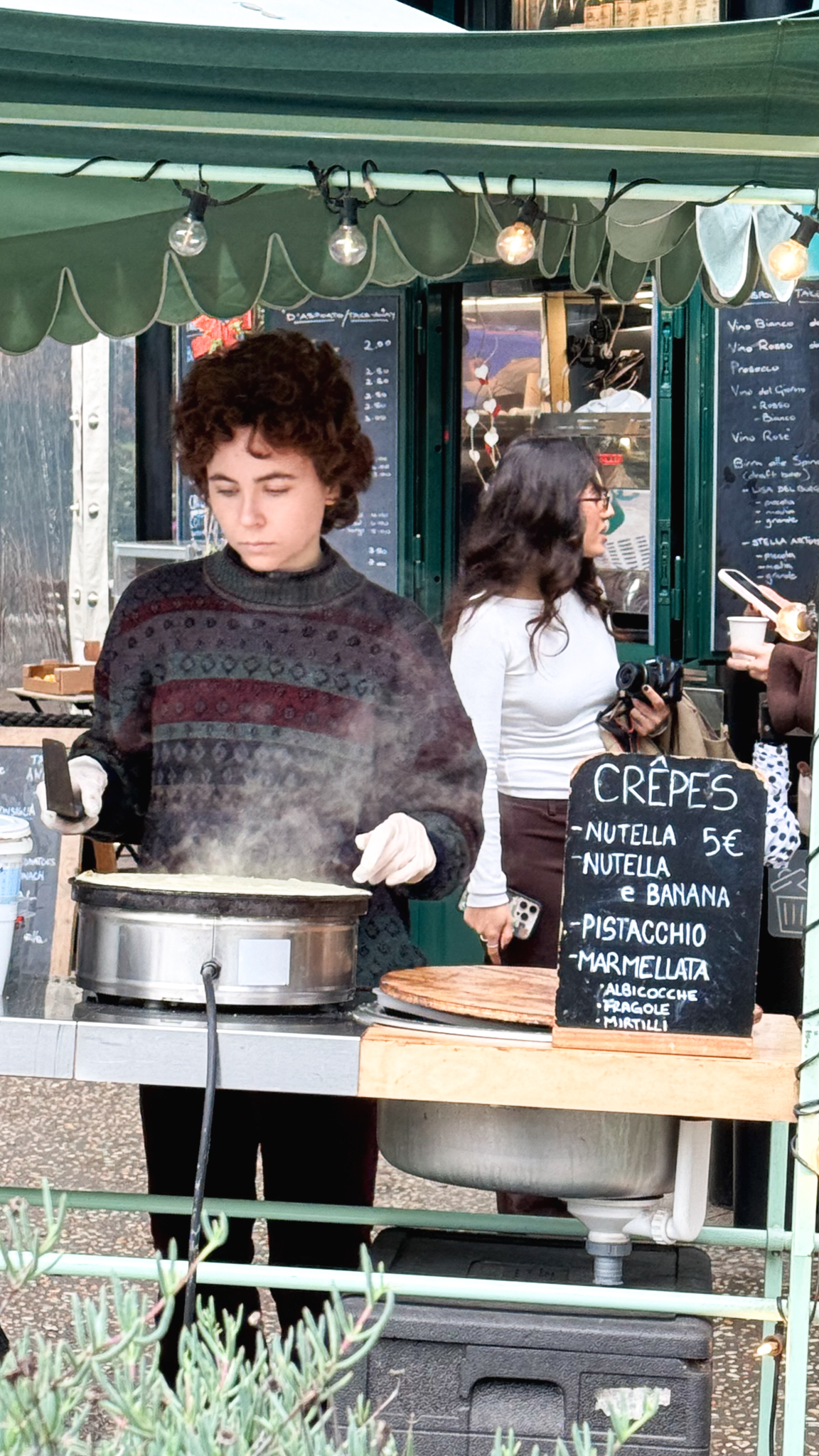공원의 한 카페에서 크레페를 만들고 있는 저분이 여성인지 남성인지 궁금해서 한참을 바라봤는데 목소리를 들어보니 여성이었습니다. 외모 품평을 하려고 하는 것은 아니고, 크레페를 만드는 모습이 신기해서 한참을 서서 구경했었습니다.
