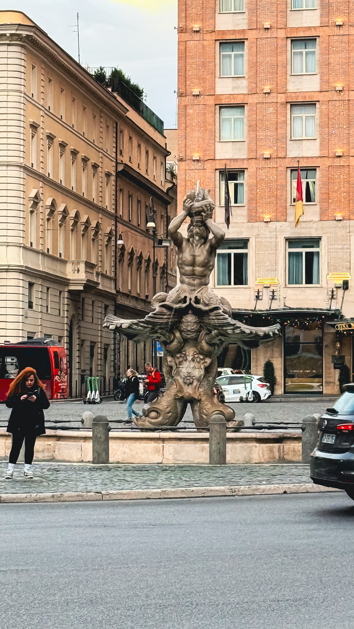 우리는 카페에서 나와 근처에 있는 바르베리니 광장으로 향했습니다.