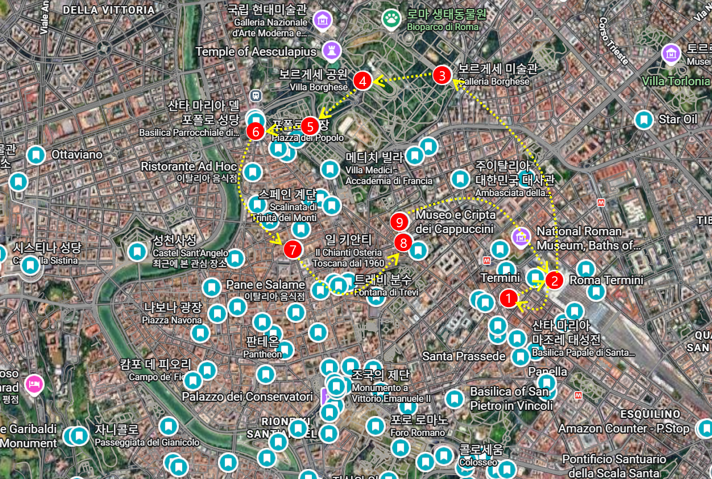 [로마 여행] 6일차 - 보르게세 미술관, 보르게세 공원, 핀초 언덕, 포폴로 광장, 코르소 거리, 바르베리니 광장, 카푸치니 박물관 및 납골당