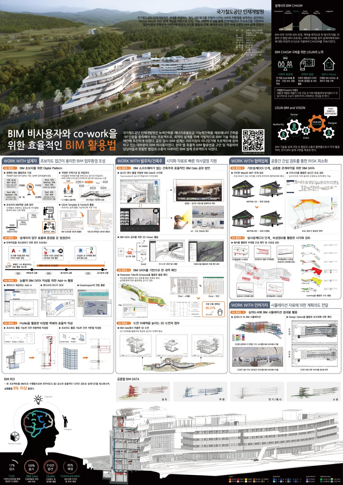 제가 가장 주목한 수상작품입니다. 한미글로벌에서의 건설사업관리(CM) 단장을 경험해봤기 때문에 설계 및 시공단계에서의 검토가 용이하고, 모든 공종에 개입하여 검토할 수 있으며, 인허가 및 행정 처리에 대한 리스크 분석까지 가능하므로 일정 및 비용 추적이 획기적으로 개선된 것으로 보입니다.