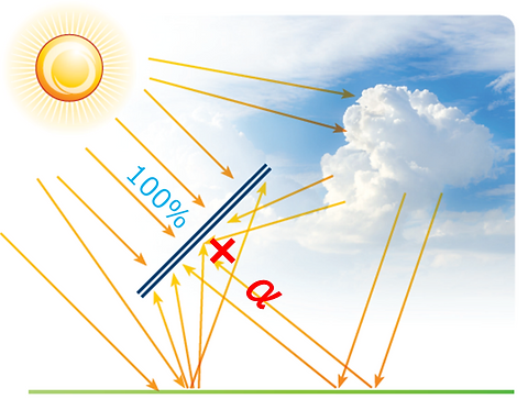 양면형 모듈은 말 그대로 모듈의 표면으로부터 태양광을 받을 뿐만 아니라, 뒷면으로도 지상, 옥상, 구름, 및 대기 중의 모든 반사 및 산란광을 수광함으로써 통상 표면의 발전량에 플러스 알파의 발전량을 얻을 수 있습니다.