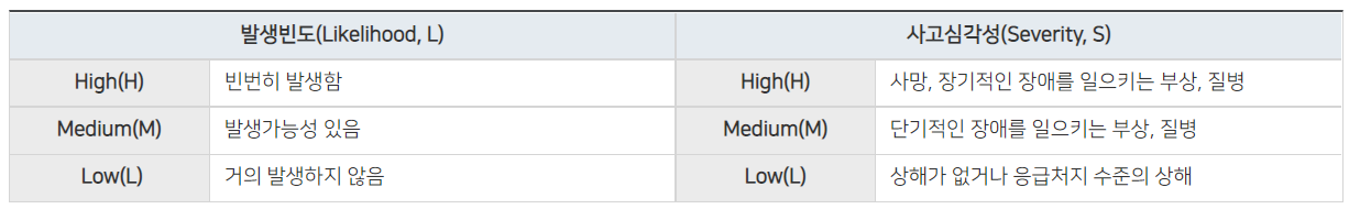 “위험성(Risk)”이란? 사고의발생빈도(L: Likelihood)와심각성(S: Severity)을 말한다.