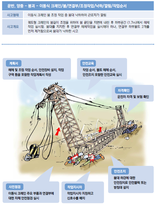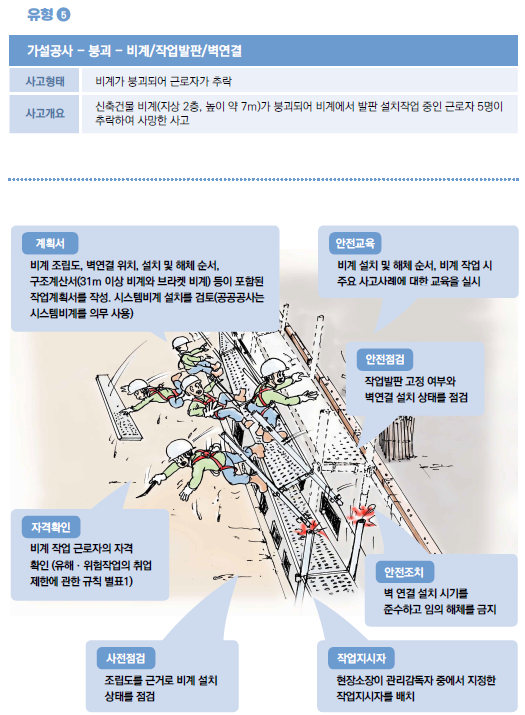 예를 하나 들어 드리면, 사고 위험이 있는 공사의 유형, 발생 가능한 사고의 형태와 개요를 먼저 설명하고 예방활동과 안전점검 요령과 안전수칙 등을 그림과 함께 설명합니다.