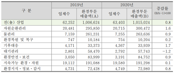환경부 2020년 기준 환경산업통계조사 보고서 - 전체 - 환경정책
