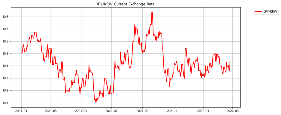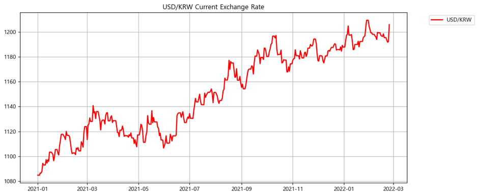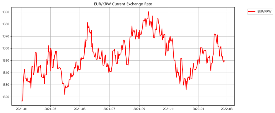 첫 부분은 2021년 1월 1일부터 현재까지 시세의 변동 그래프들입니다. 2021년부터 정리한 이유는 특별히 없습니다. 이것저것 해보니 가독성이 그나마 괜찮아서 선택한 것 뿐입니다. 그리고는 최근 월요일부터 금요일까지 시세 변동 그래프의 순서로 보여드리겠습니다.