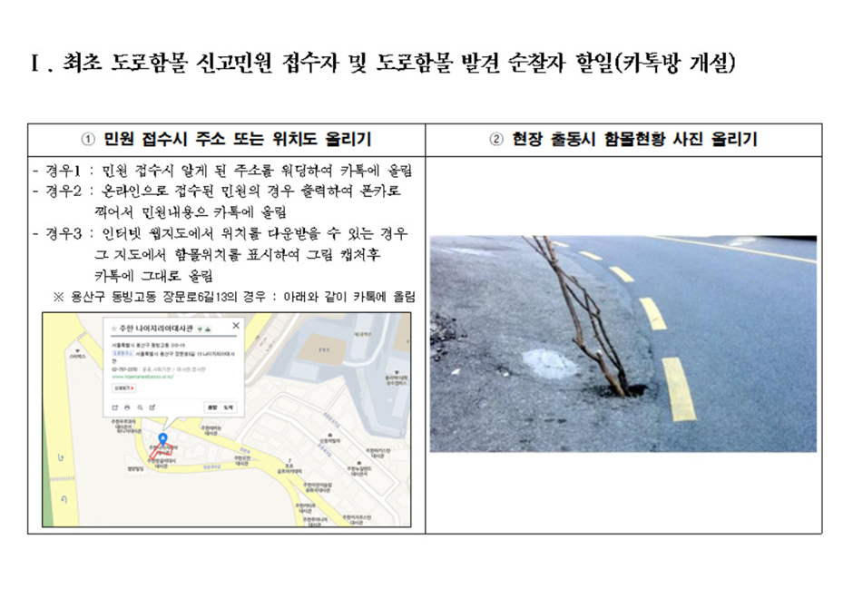 도로함몰 기준 및 발생시 대응 매뉴얼 재공지