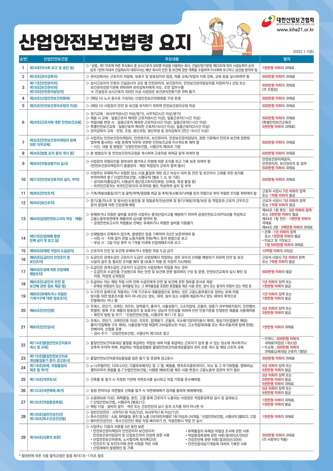 2022년 산업안전보건법령 요지 입니다. 귀 사업장에 적합한 크기로 인쇄 후 사용해주시기 바랍니다.
