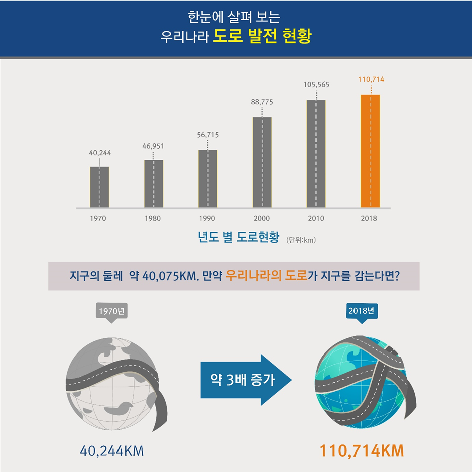 우리나라의 도로의 총 연장은 지구 둘레의 3배라고 합니다.