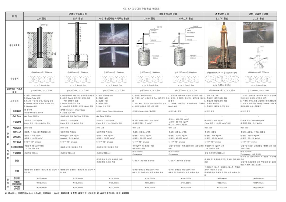 - LW공법, SGR 공법, ASG 공법 (복합약액주입공법)