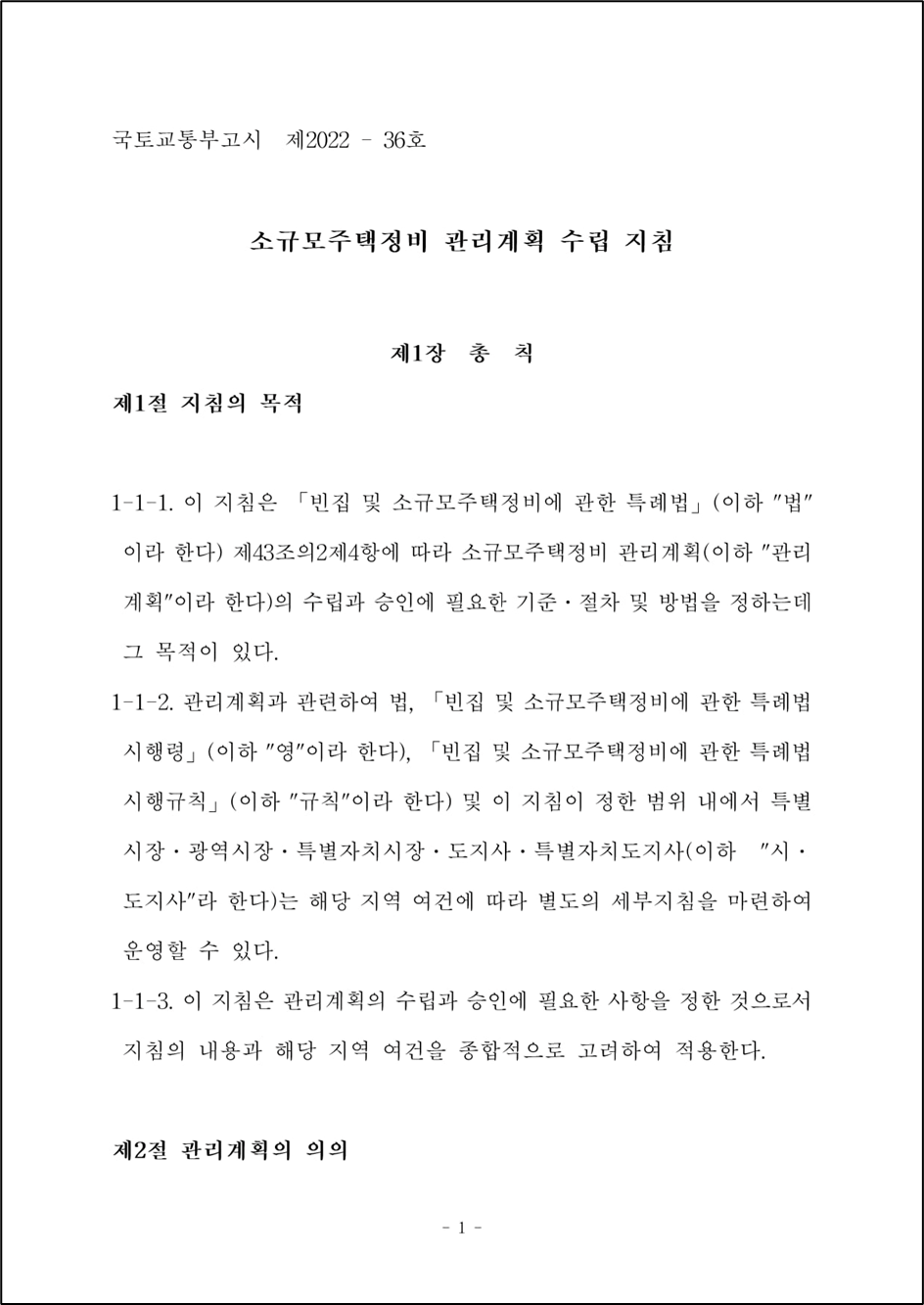「빈집 및 소규모 주택정비에 관한 특례법」에 따라 관리계획의 수립과 승인에 필요한 기준‧절차 및 방법을 고시