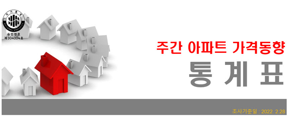 월간 단위로 전국주택가격동향조사 보고서와 통계표를 발표하고, 주간 단위로 주간아파트가격동향조사 통계표와 주간아파트가격동향을 배포하고 있습니다. 그 중에서 전국 아파트 가격의 주간 가격 동향을 정리해봤습니다.