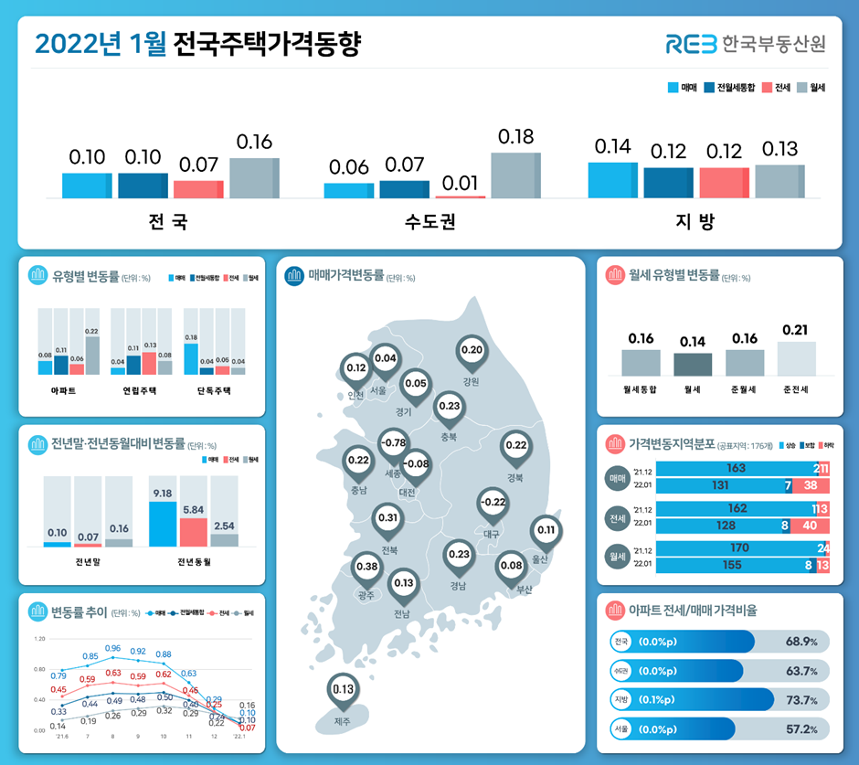 2022년 1월 현재 전국의 주택 가격 동향을 가늠해 보실 수 있습니다. 신문 기사도 참고하시고 다양한 데이터를 참고하시면서 추가로 참고하시면 좋을 것 같습니다.