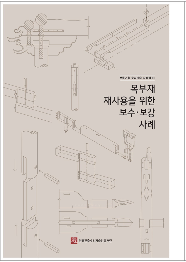 지금까지 수집된 문화재수리 기록 중 목부재의 보수·보강 내용들을 선별 조사하여 일선 수리현장에서 참고할 수 있도록 정리한 것입니다. 건조물문화재 수리는 법령과 지침으로 최대한 기존 부재를 재사용하도록 권고하고 있습니다. 다만, 그 세부적인 방법과 공법 적용에 있어 어려움을 겪는 현장이 적지 않기에 본 사례집이 조금이나마 도움이 되기를 바랍니다.