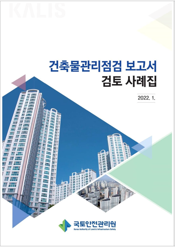 건축물관리법 제 18조의 시행(’20.5.1) 이후, 국토안전관리원이 수행한 건축물관리점검 결과에 대한 평가 현황을 분석하고, 우수사례를 발췌, 공유함으로써 허가권자와 관계전문가(건축사, 구조, 시공, 건설안전기술사 및 안전진단전문기관 등)의 검토수준 향상과 더불어, 실질적으로 건축물관리점검을 실시하는 건축물관리점검기관의 기술수준 향상 및 부실점검 방지에 도움을 주고자 합니다. 본 사례집의 주요 목차는 아래와 같습니다.