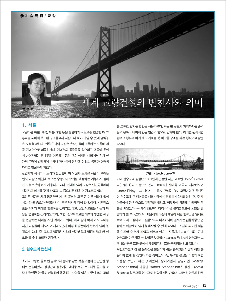 특히 토목 엔지니어로서 교량에 관심이 많고 좋아하는 분야여서 언젠가 교량만을 위한 특집 글을 써볼 생각을 막연하게 가지고 있습니다. 언제가 될지 모르겠지만 많은 분들과 교량에 대한 얘기를 나누고 싶습니다.