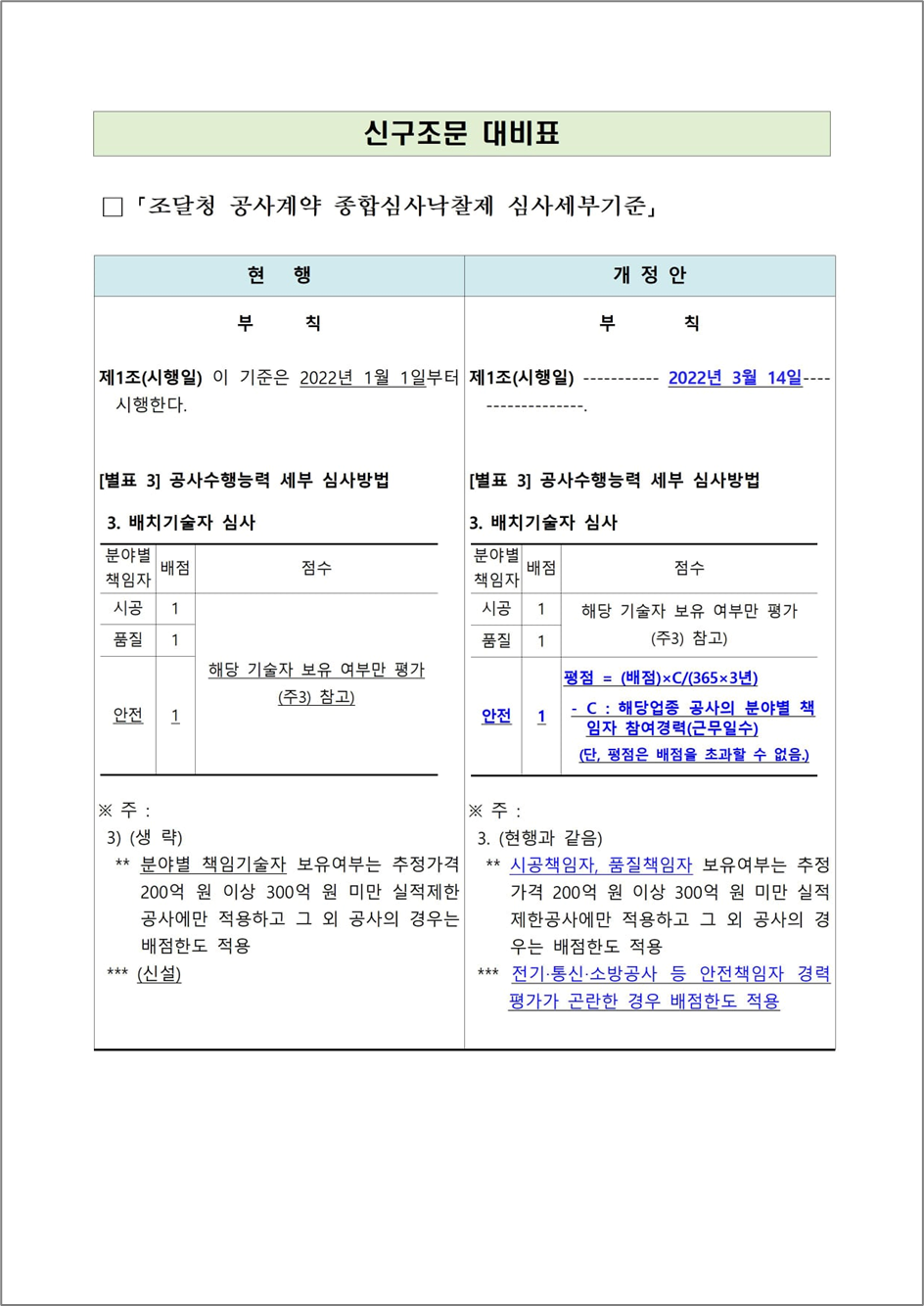 * 시공책임자, 품질책임자 보유여부는 추정가격 200억 원 이상 300억 원 미만 실적 제한 공사에만 적용하고 그 외 공사의 경우는 배점한도 적용