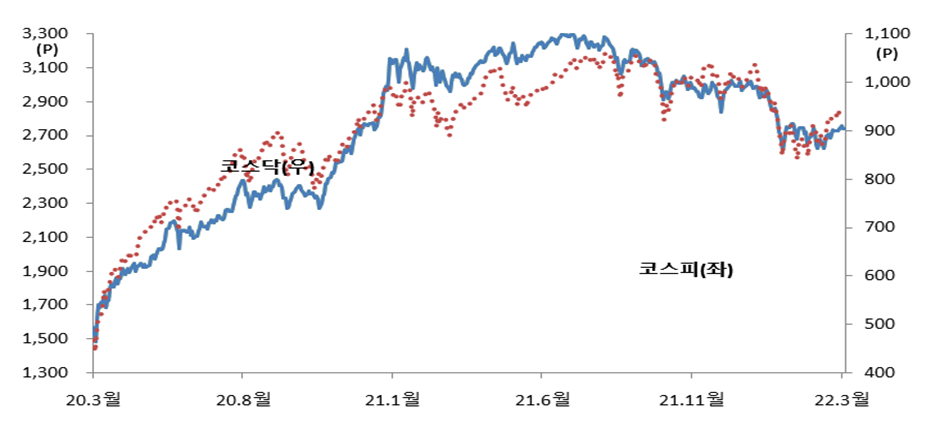 | 코스피지수 | 2,873.5 | 2,977.7 | 2,730.0 | 2,739.9 | 0.4% | -8.0% |