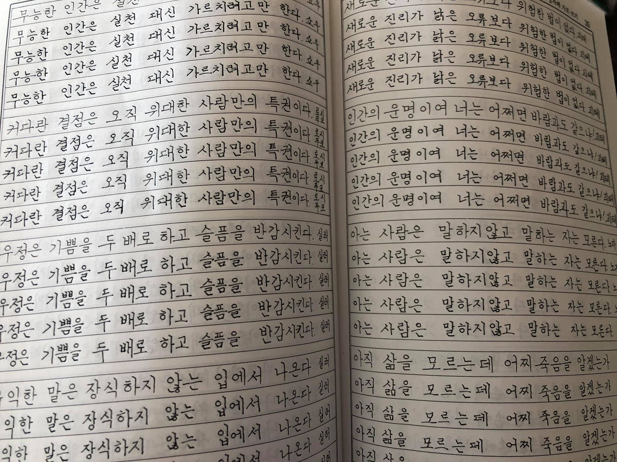 이런 제가 해외 생활을 하며 일본에서 저녁마다 한시간씩 컴플렉스 탈출을 위해 글씨 교정을 혼자서 연습했습니다. 나도 글 좀 잘 써봤으면 했습니다. 약2년간 매일 저녁 한 시간씩 글씨를 그려가며 연습했습니다.그러나 회의 중 급하게 글을 적다 보면 저도 모르게 다시 예전 버릇이 나와 도루묵이 되어 버리기 일쑤였습니다.
