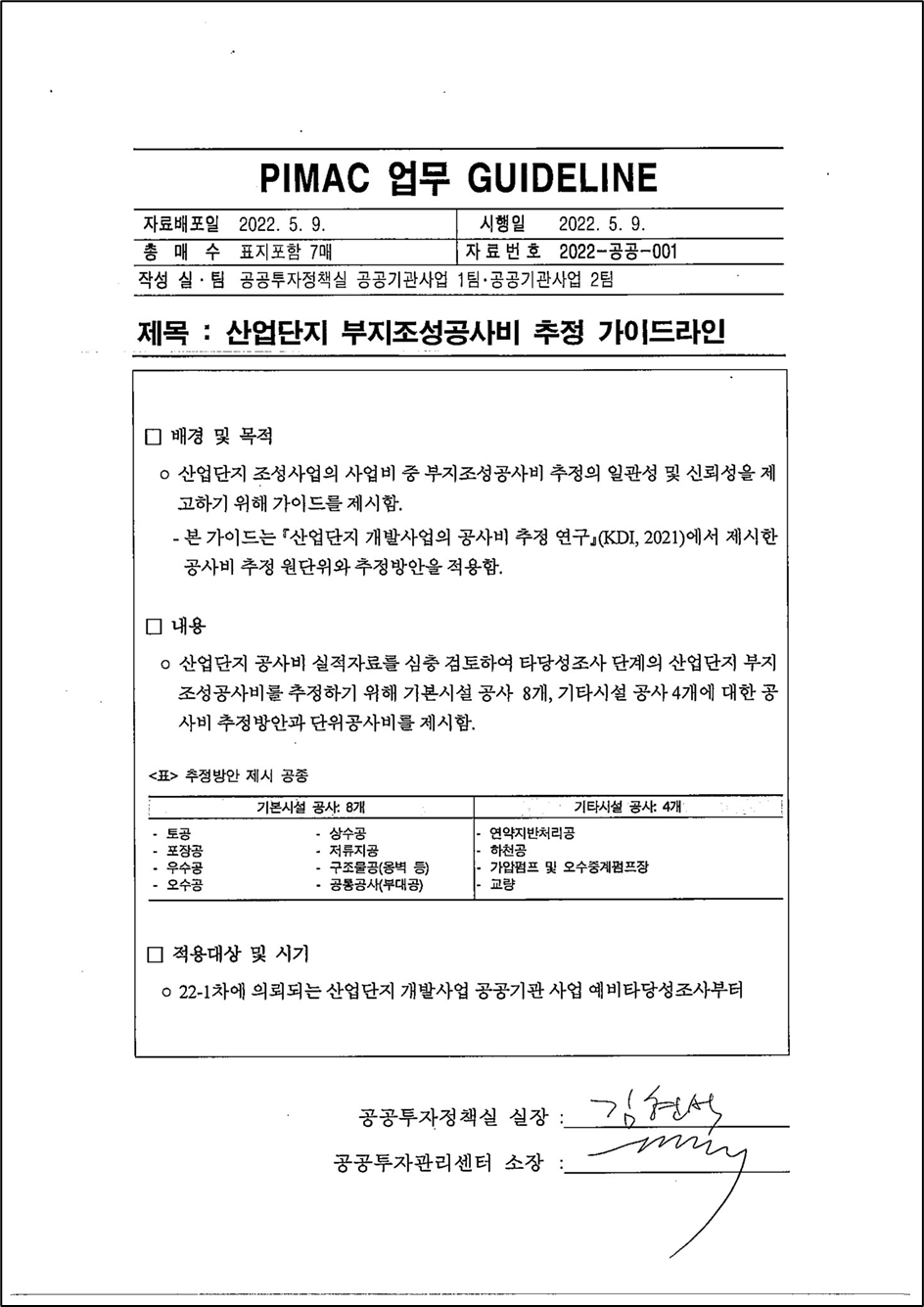 산업단지 조성사업의 사업지 중 부지조성공사비 추정의 일관성 및 신뢰성을 체고하기 위해 가이드를 제시함.
