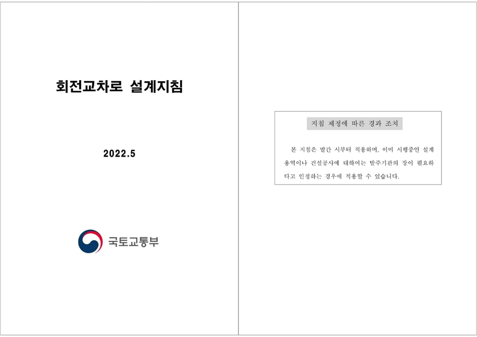 본 지침은 교통량이 적어 교통신호 운영이 비효율적이거나 비신호로 운영되어 교통사고가 발생하는 등의 문제점을 가지고 있는 기존 교차로를 개선하기 위하여 회전교차로로 전환하는 경우 또는 회전교차로를 신설하는 경우에 합리적이고 효율적인 계획 수립 및 바람직한 설계를 위하여 적용할 수 있다. 본 지침은 도로법 제10조(도로의 종류와 등급)에 규정된 도로 중 설계속도가 70km/h 이하인 도로에 대해 적용함을 원칙으로 하되, 다만 도로교통법 제17조(자동차등과 노면전차의 속도)의 ②항에 따라 70km/h 이하로 속도를 제한하는 도로에 준용할 수 있다.
