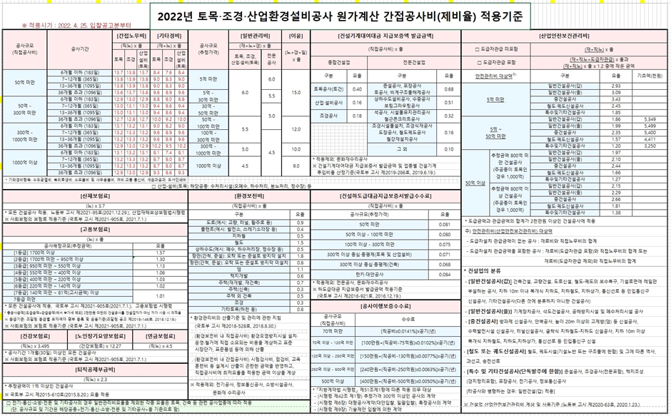 - 산재·고용보험료율 등 법정 요율은 해당 부처(국토교통부, 고용노동부 등)에 문의