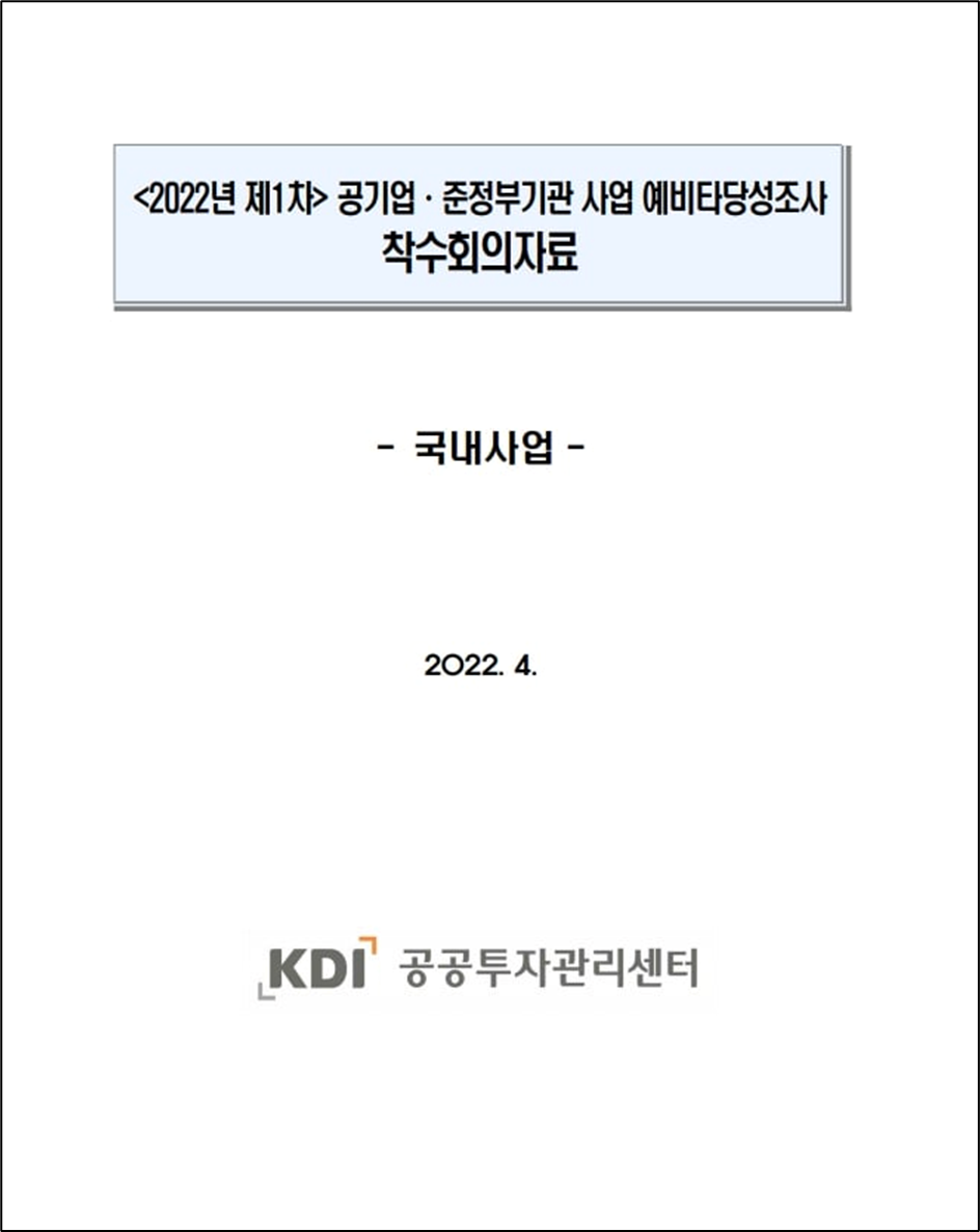 제목 : 2022년 제1차 공기업·준정부기관 사업 예비타당성조사 착수회의자료(수정)
