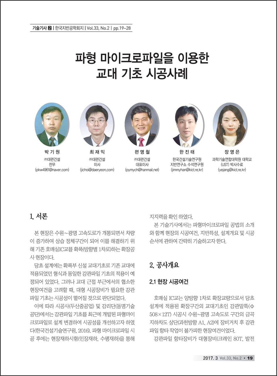 본 기술기사에서는 파형마이크로파일 공법의 소개와 함께 현장의 시공여건, 지반특성, 설계개요 및 시공 순서에 관하여 간략히 기술하고자 한다.