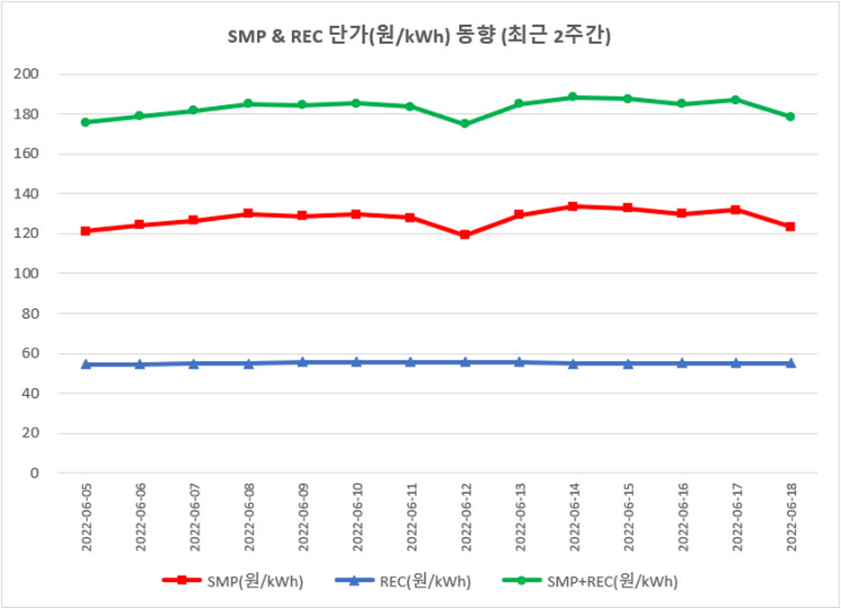 | 날짜 | SMP(원/kWh) | REC(원/kWh) | SMP+REC(원/kWh) |