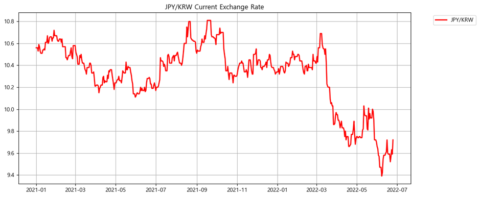2021년 1월 1일부터 2022년 6월 25일 현재까지 시세