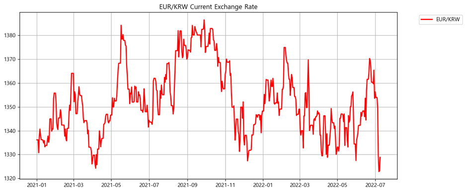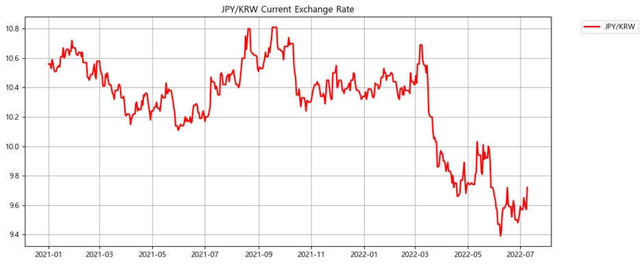 2021년 1월 1일부터 2022년 7월 9일 현재까지 시세
