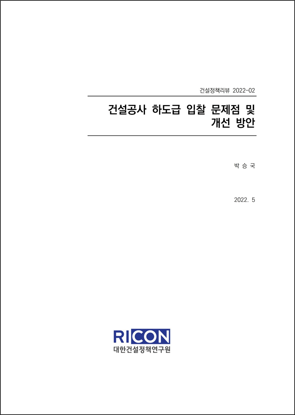 - 하도급 입찰자료 공개를 위한 하도급법의 개정은 2021년 12월에 이루어졌으나 공개의 대상이 종합심사낙찰제가 적용되는 공공공사에 국한되어 있으며, 이를 위반시 처벌은 과태료 처분에 불과하여 본 개정안의 시행 이전임에도 개정 법률의 유효성에 대한 논란이 있음. 따라서 본 연구에서는 그 동안 논의되어왔던 입찰 결과 공개의 타당성에 대해 다시 살펴보고 입찰 공개제도의 합리성과 실효성을 높이는 방안에 대하여 제시하고자 함