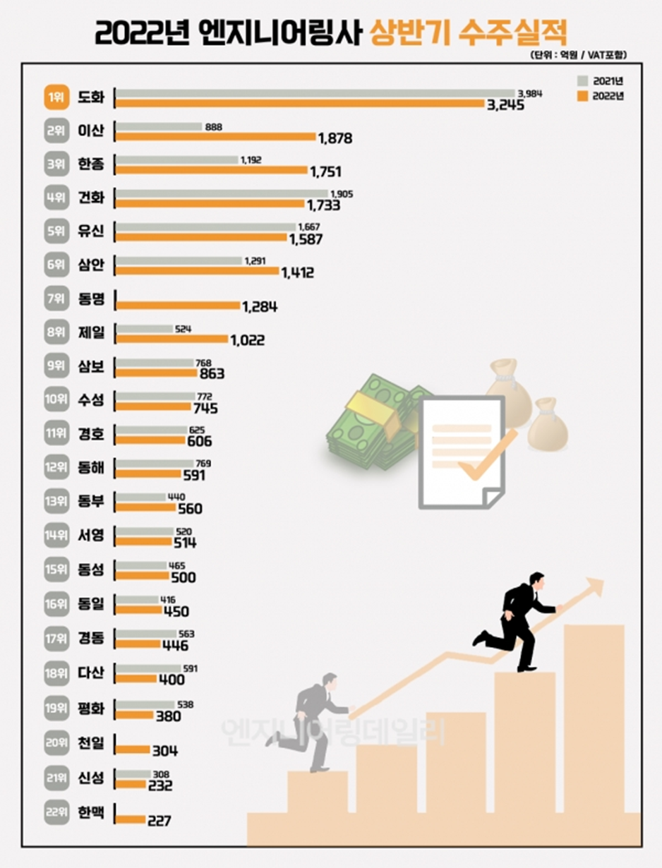 2022 엔지니어링사 상반기 수주, 이산·제일 평균 100% 실적 개선…삼보기술단 인당 수주액 1위 - 엔