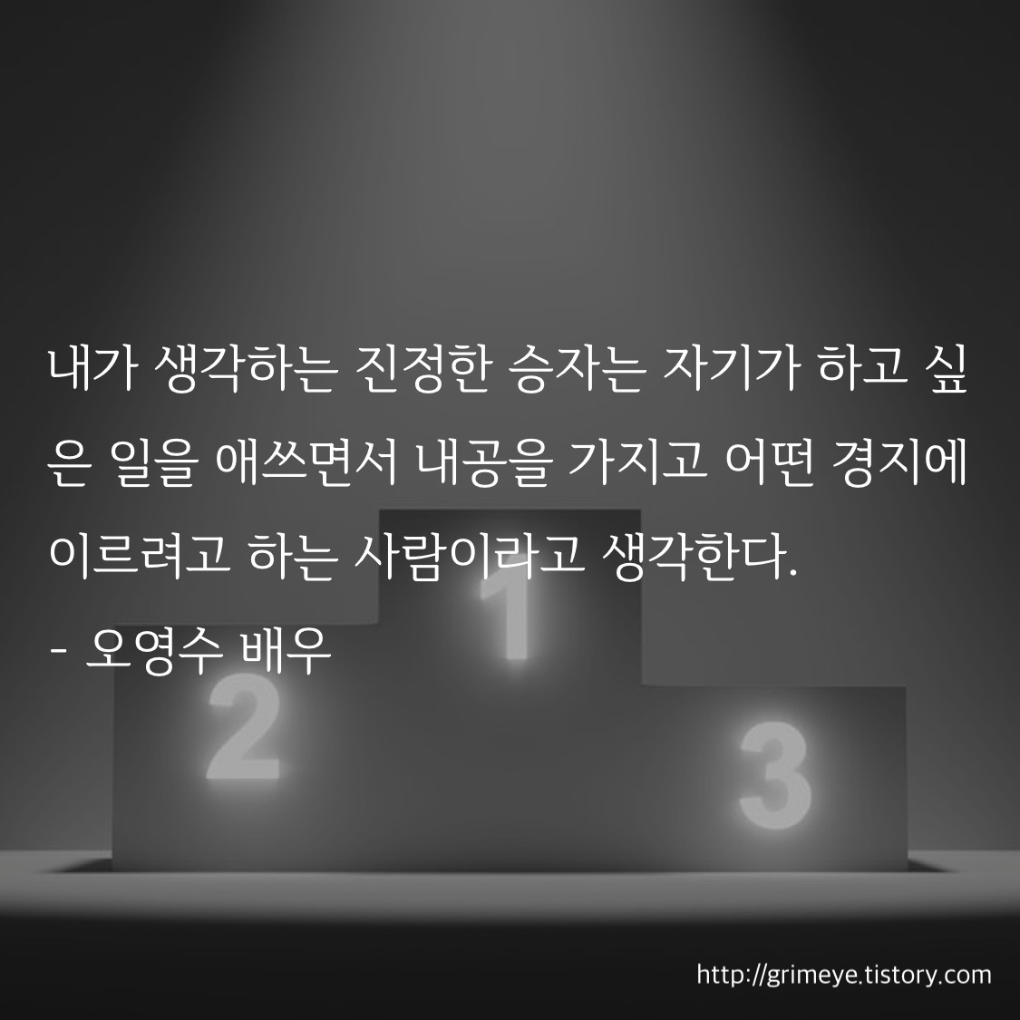 내가 생각하는 진정한 승자는 자기가 하고 싶은 일을 애쓰면서 내공을 가지고 어떤 경지에 이르려고 하는 사람이라고 생각한다.