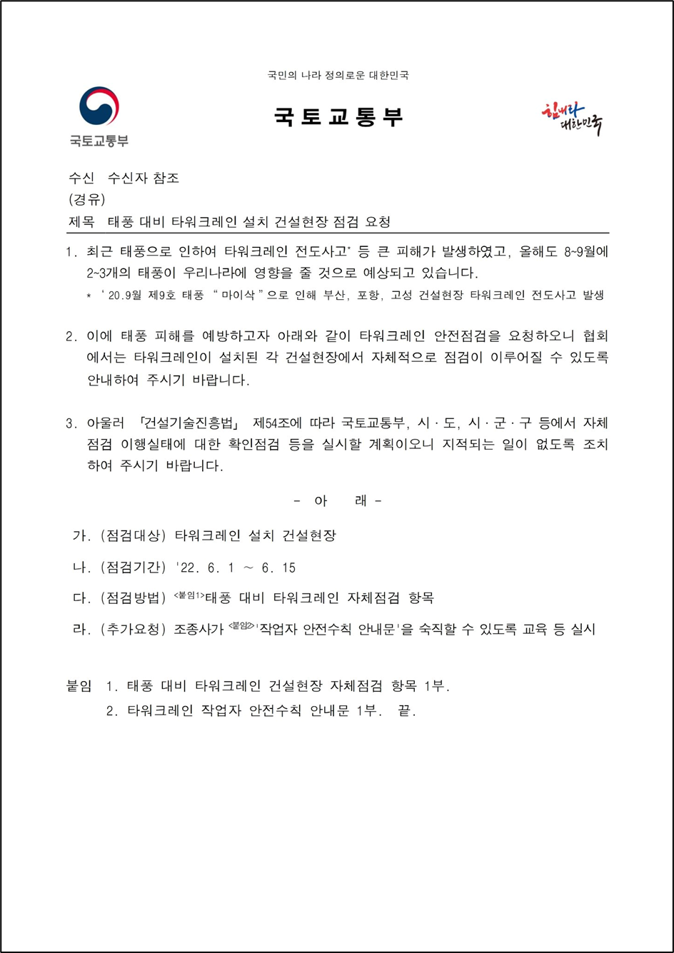 | 건설공사 참여자 안전관리 역량 강화 (0) | 2022.11.22 |