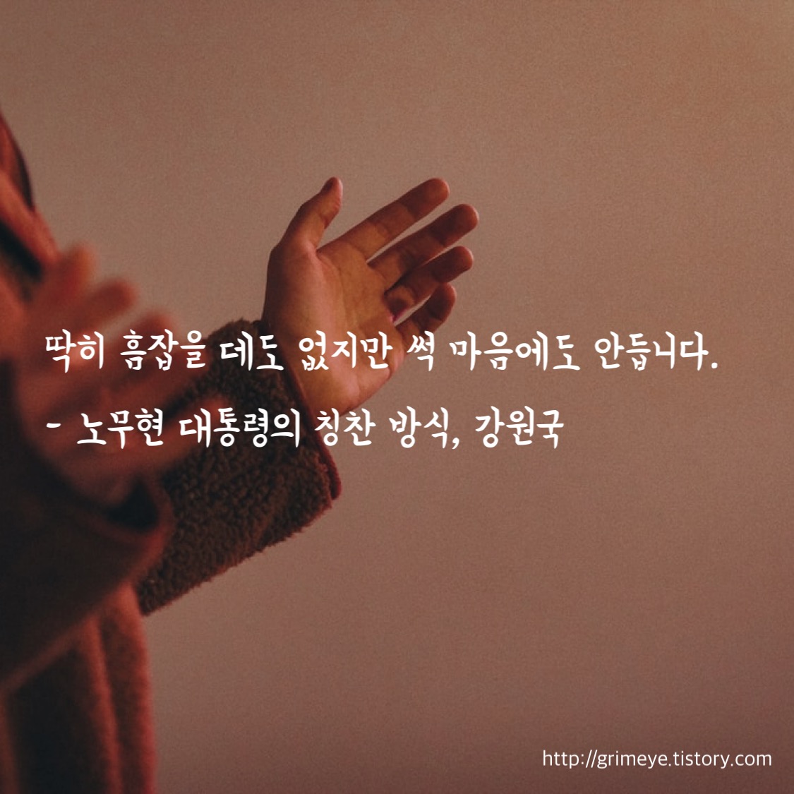 사실 어떻게 보면 칭찬이라 보기 어렵습니다. 말만 놓고 보면 결국 마음에 드는 구석이 없다는 말인데 흠 잡을 곳이 없으니 칭찬이라고 생각했던 모양입니다. 노무현 대통령은 말과 글의 수준이 엄청났던 분이었습니다. 자신이 쓰면 더 잘 쓸 수 있고 실제로 '존경하는 국민 여러분. 독도는 우리땅입니다.'로 시작했던 815 기념사는 노대통령이 직접 일필휘지했던 연설문으로 유명하죠. 강원국 작가가 감탄했었다고 소회를 밝히기도 했었습니다. 이런 분이 바빠서 다 쓸 수 없으니 연설 비서관을 둔 것이니 성에 차지 않을 만도 할 것 같습니다.