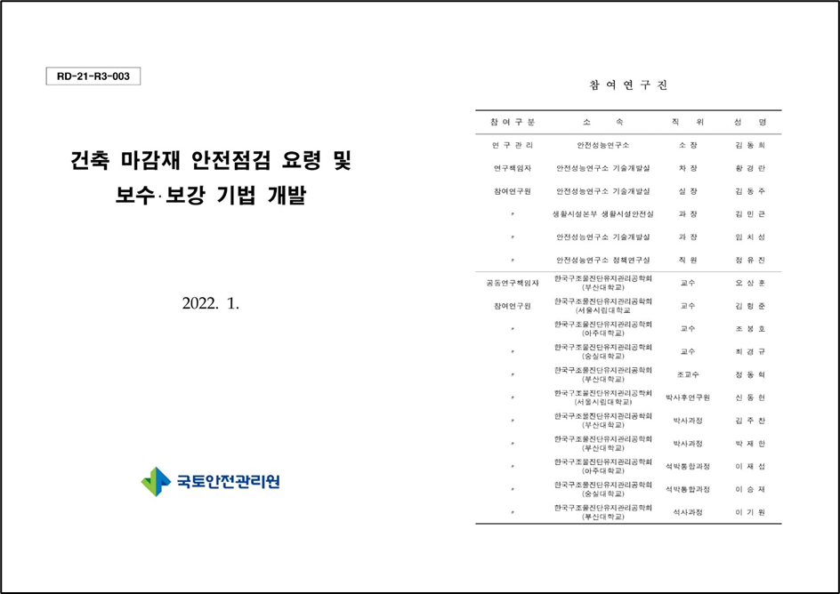 □ 건축 마감재 안전점검 요령 및 보수‧보강 기법 개발